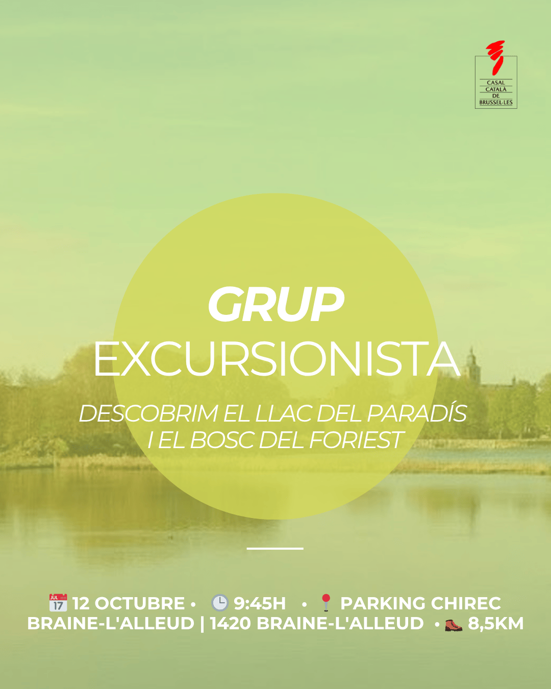Per començar el curs, el grup excursionista es torna a calçar les botes! El diumenge 12 d’octubre us convidem a gaudir d’una ruta de senderisme a Braine-l’Alleud, passant pel Parc i Llac del Paradís, el pintoresc nucli de Timpe-et-Tard i el tranquil Bosc del Foriest. Una caminada de poc desnivell, ideal per a gaudir de la natura en bona companyia!