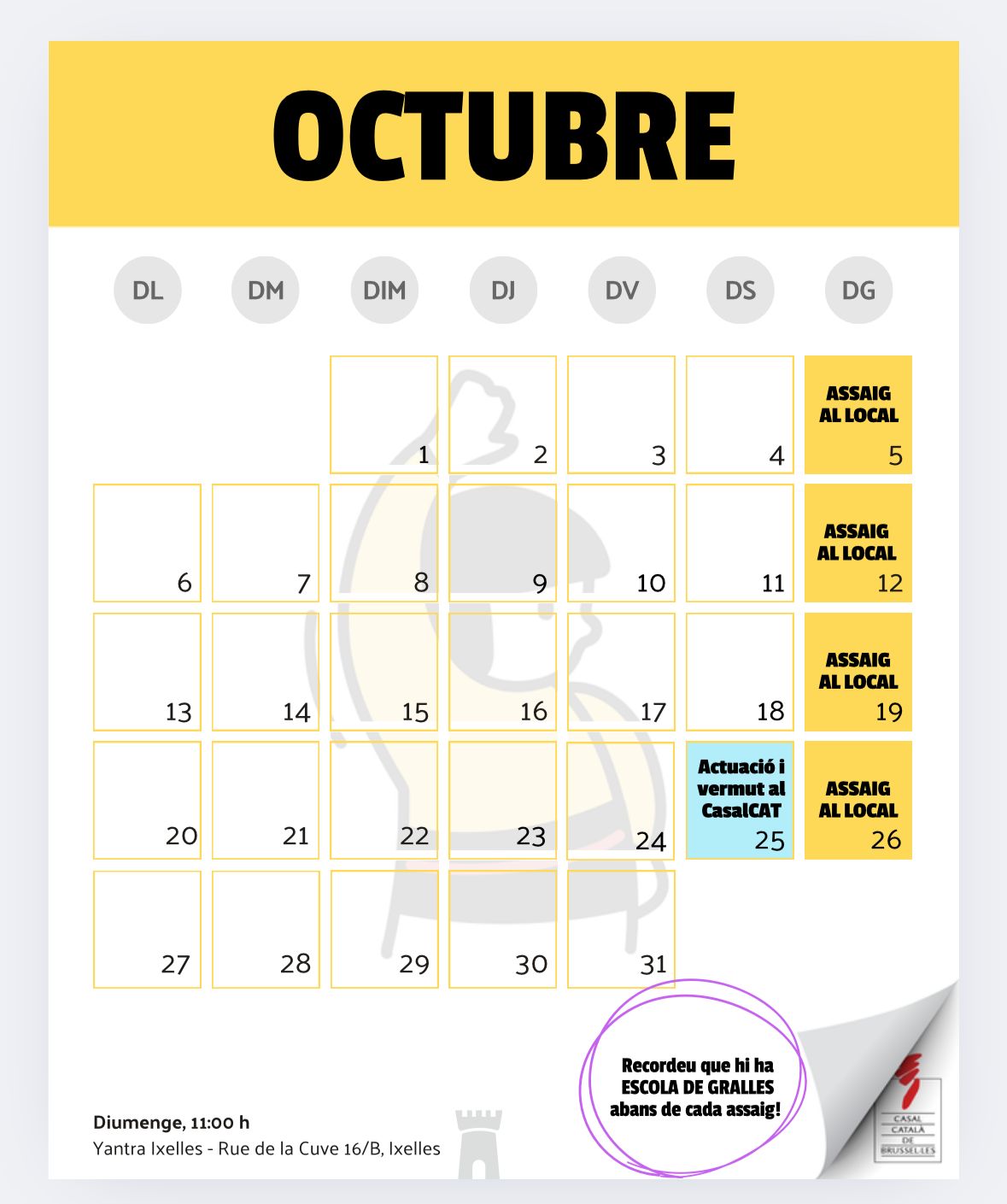 Comencem el mes d’octubre amb els assajos al local! Ens veiem cada diumenge al matí (10:45h).